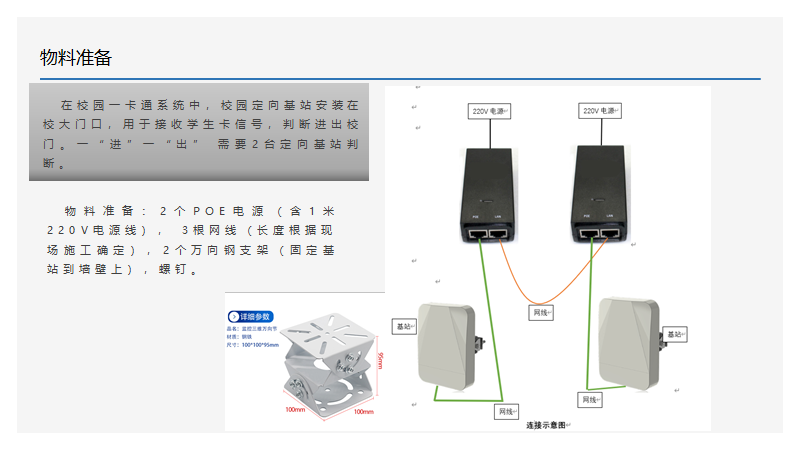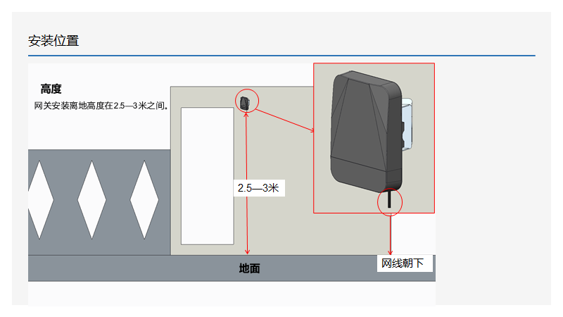 定向智慧網(wǎng)關(guān)一般使用在校門(mén)、小區(qū)門(mén)口,其安裝時(shí)需要根據(jù)大門(mén)實(shí)際尺寸來(lái)規(guī)劃基站安裝位置和角度。