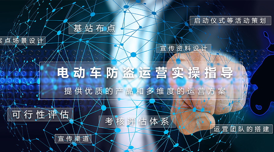 任聯(lián)提供電動車防盜運營所需的可行性評估、基站布點、啟動儀式等活動策劃、備案點場景設(shè)計、宣傳資料設(shè)計、宣傳渠道、考核評估體系以及運營團(tuán)隊的搭建等運營實操指導(dǎo)。