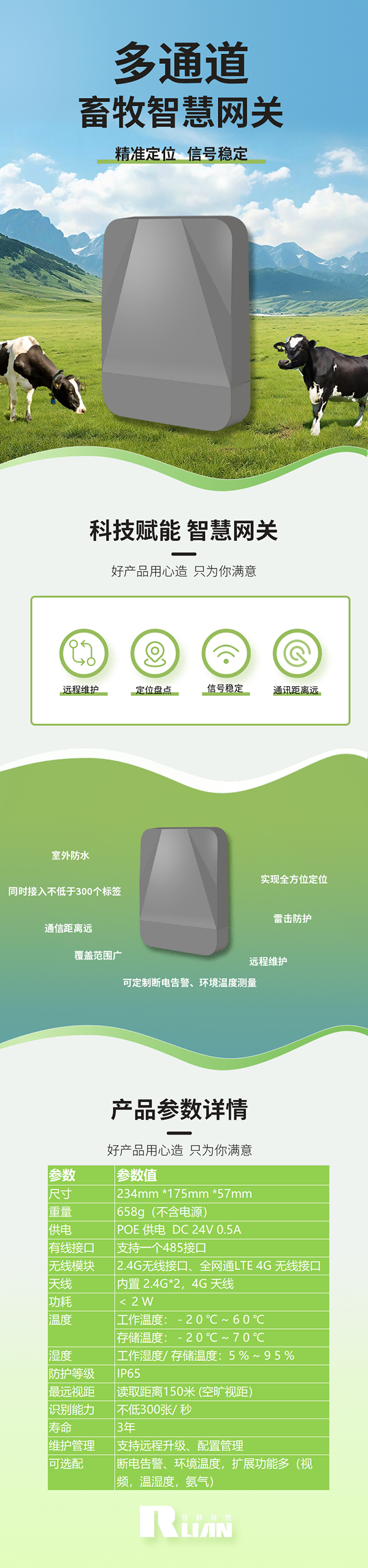 多通道畜牧基站采用多通道模組確保全方位信號覆蓋,配合我們?nèi)温?lián)研發(fā)的電子耳標(biāo)可實(shí)現(xiàn)全方位定位,信號穩(wěn)定,覆蓋范圍廣。傳輸距離遠(yuǎn),在空曠視距下可達(dá)150米。具備工業(yè)級IP65防護(hù)等級,可靠應(yīng)對各種氣候條件。多通道該網(wǎng)關(guān)支持多種無線通信方式的數(shù)據(jù)傳輸。此外,G31-W2內(nèi)置全向天線,可提供優(yōu)質(zhì)的信號接收和發(fā)送性能。