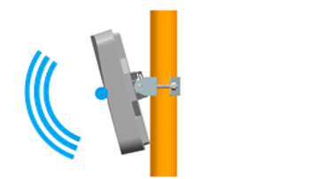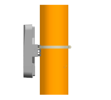3) 全向基站通過抱箍固定在電線桿上,位置必須是垂直于地面(如下圖),否則會(huì)嚴(yán)重影響基站的通訊性能和信號(hào)強(qiáng)度。
