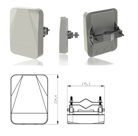 安裝在室外時(shí),采用抱箍安裝在電線桿上面。抱箍的選擇、安裝要求請(qǐng)嚴(yán)格遵守,否則會(huì)影響到基站的性能和使用壽命。