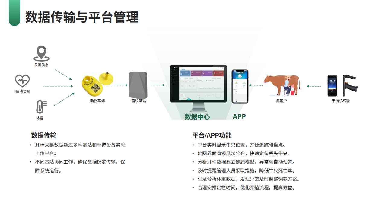 ? 體溫+運(yùn)動(dòng)雙維數(shù)據(jù):24小時(shí)監(jiān)測(cè)牛只狀態(tài),異常體溫自動(dòng)預(yù)警,運(yùn)動(dòng)量分析健康趨勢(shì)。