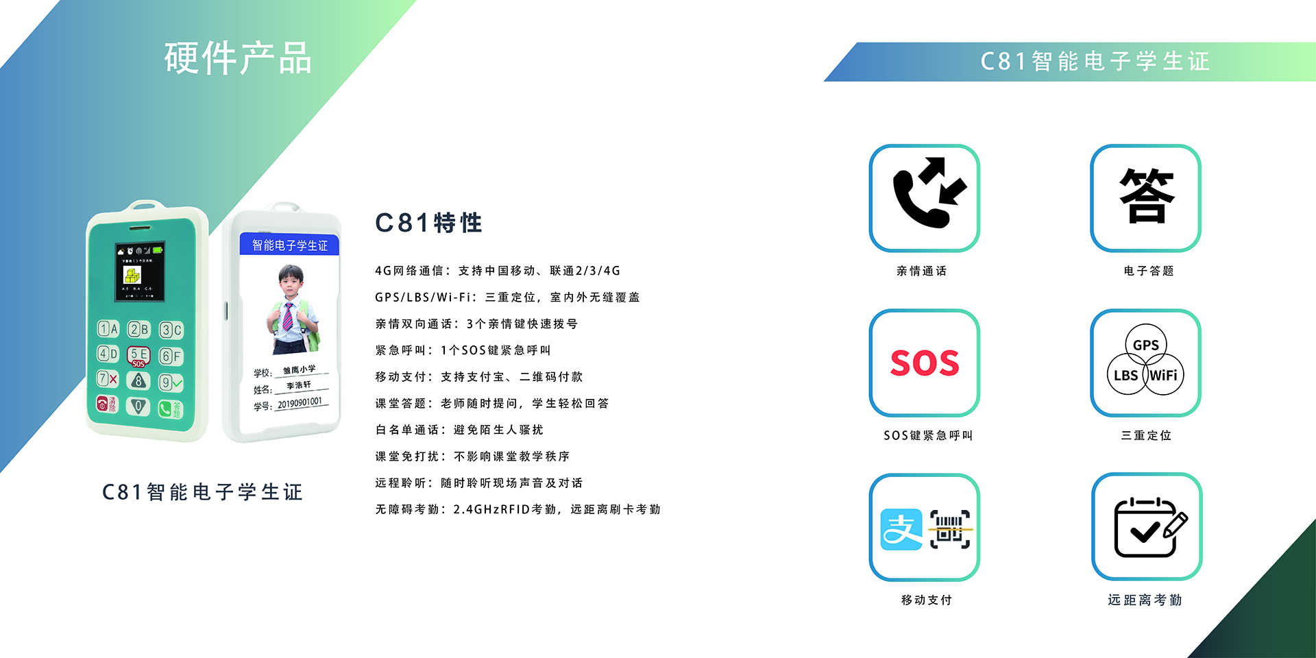 智能電子學(xué)生證C81可以進(jìn)行校園GPS學(xué)生實(shí)時(shí)定位,配合WIFI智能插座可以進(jìn)行室內(nèi)定位。課堂答題等精準(zhǔn)教學(xué)助手。