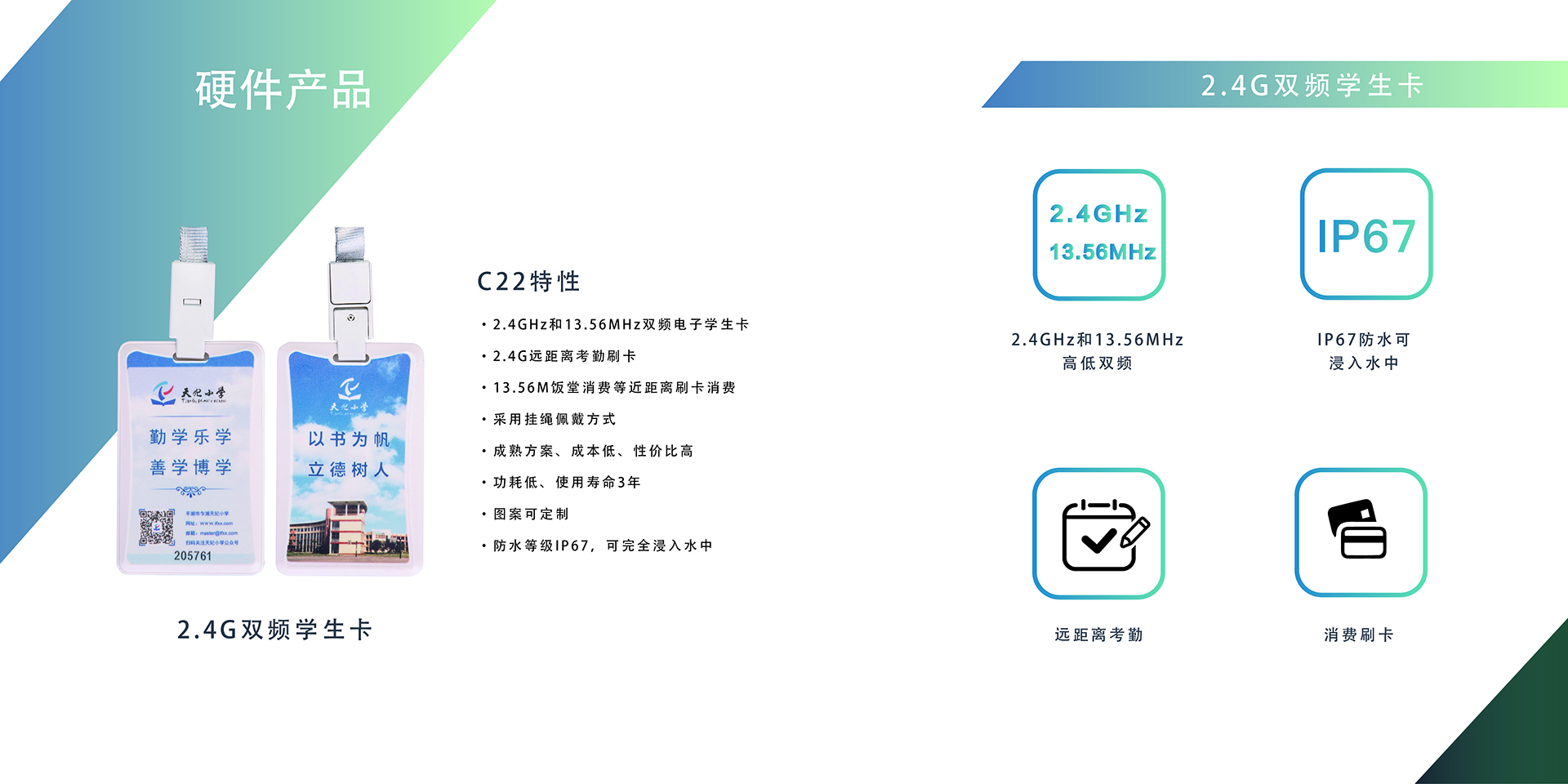 2.4G雙頻校園卡C22學(xué)生智能卡,是學(xué)生進(jìn)出校門(mén)的電子學(xué)生證,由學(xué)生隨身佩帶或攜帶。