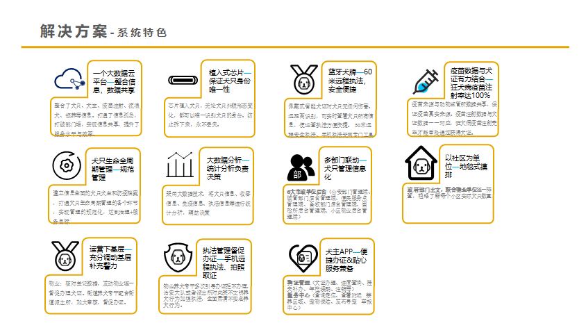 任聯(lián)犬只管理系統(tǒng),以電子犬牌等智能設(shè)備為信息載體,通過(guò)犬只全生命周期管理平臺(tái),聯(lián)合物業(yè)、犬只專干、公安、動(dòng)監(jiān)所、寵物醫(yī)院、留檢所等多部門協(xié)作,實(shí)現(xiàn)養(yǎng)犬管理?xiàng)l例的落地執(zhí)行,從根本上解決養(yǎng)犬管理問(wèn)題。